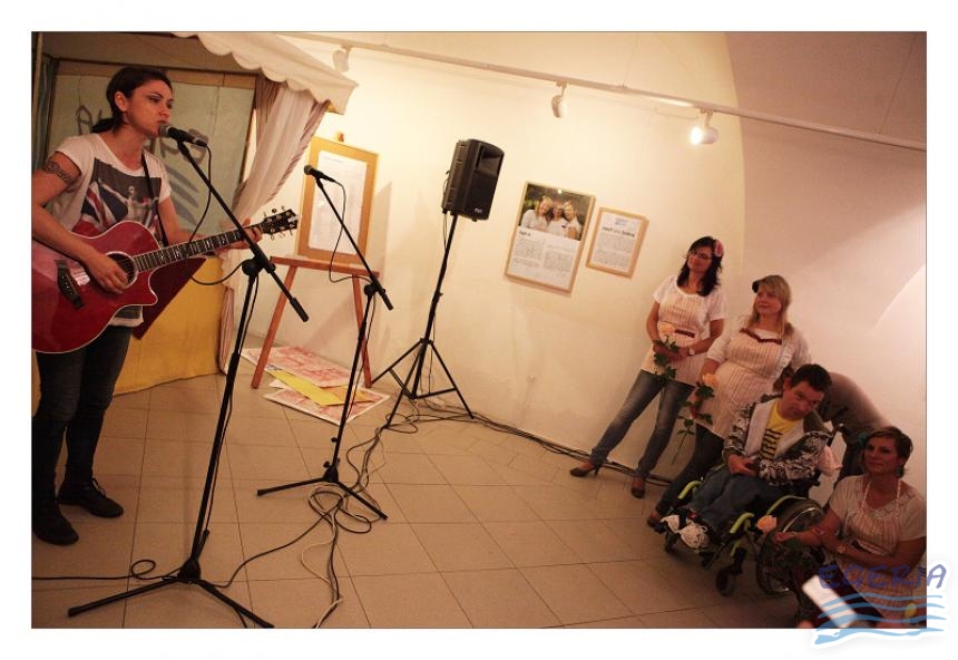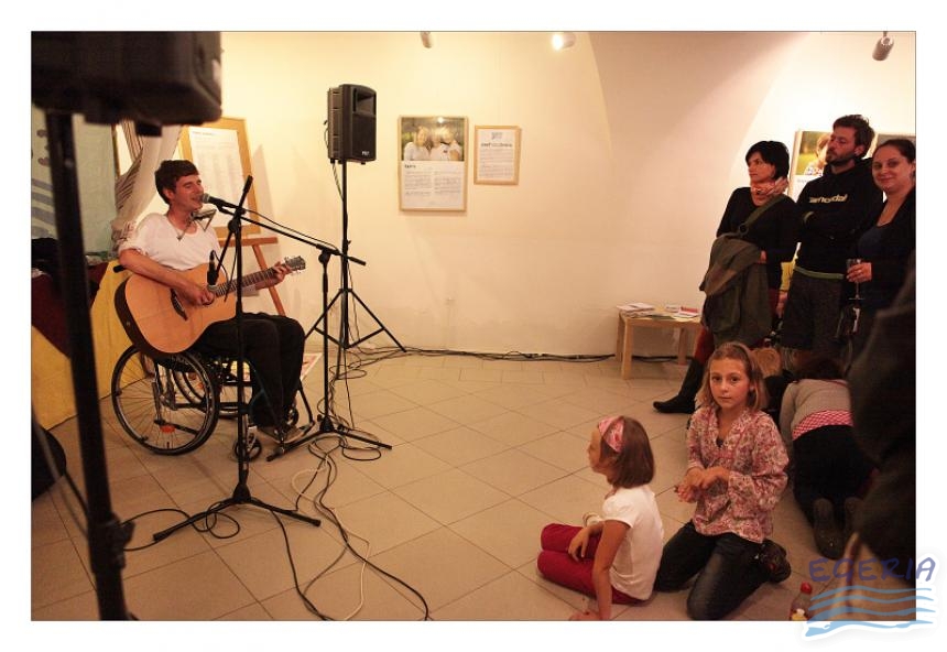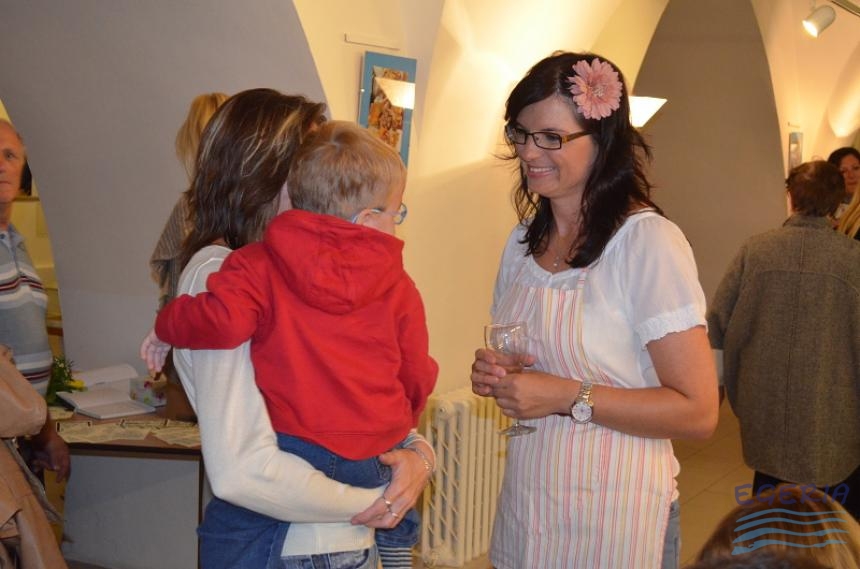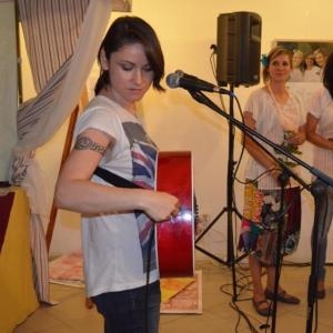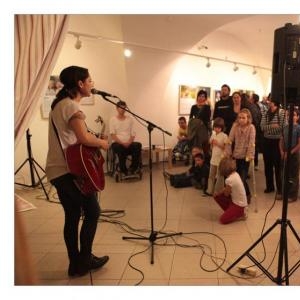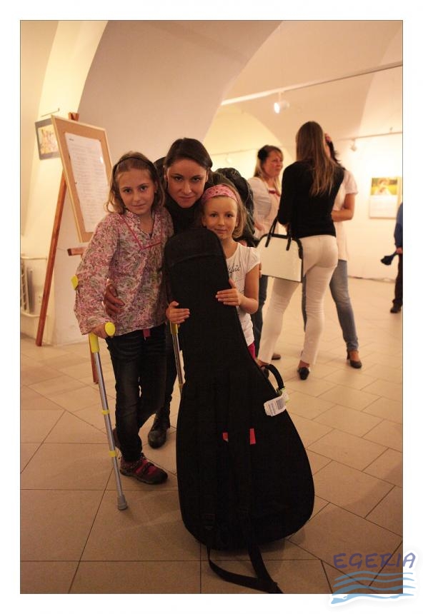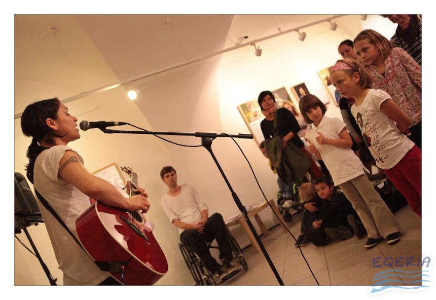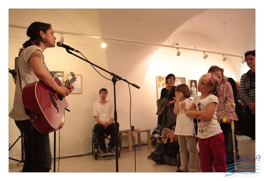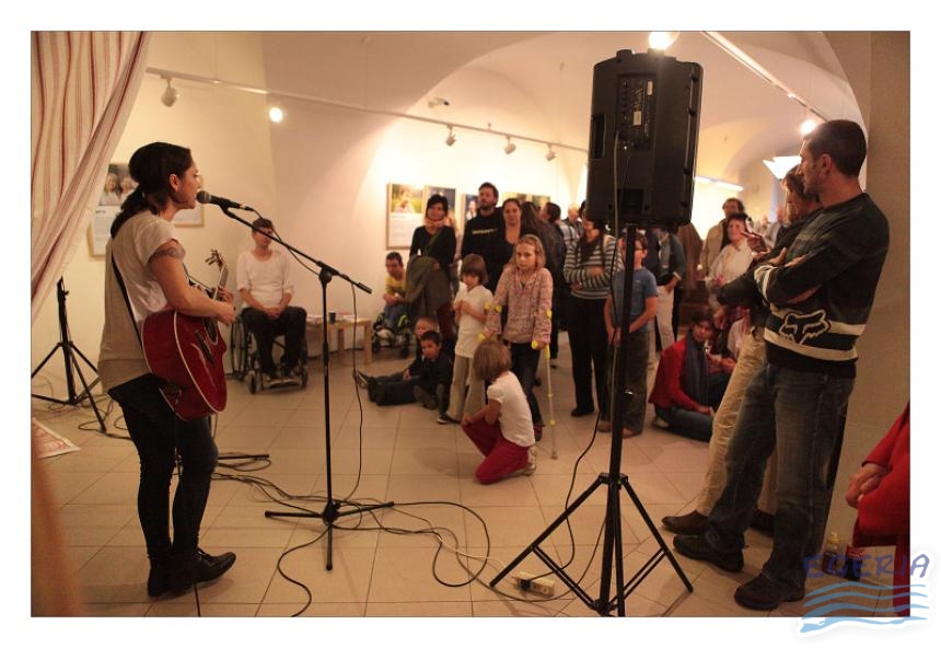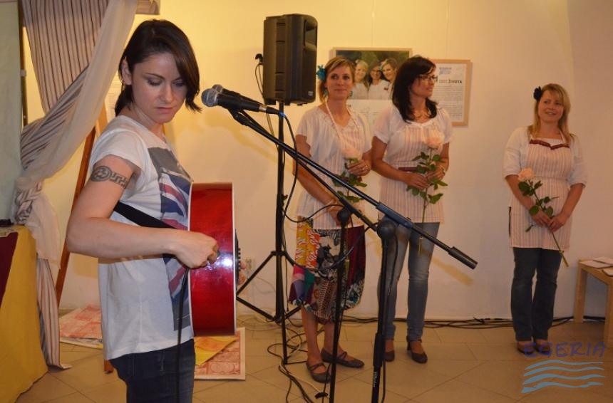 Lenka Dusilová jako patronka naší výstavy zahájila vernisáž našeho sdružení. Jak jinak, nežli písní.