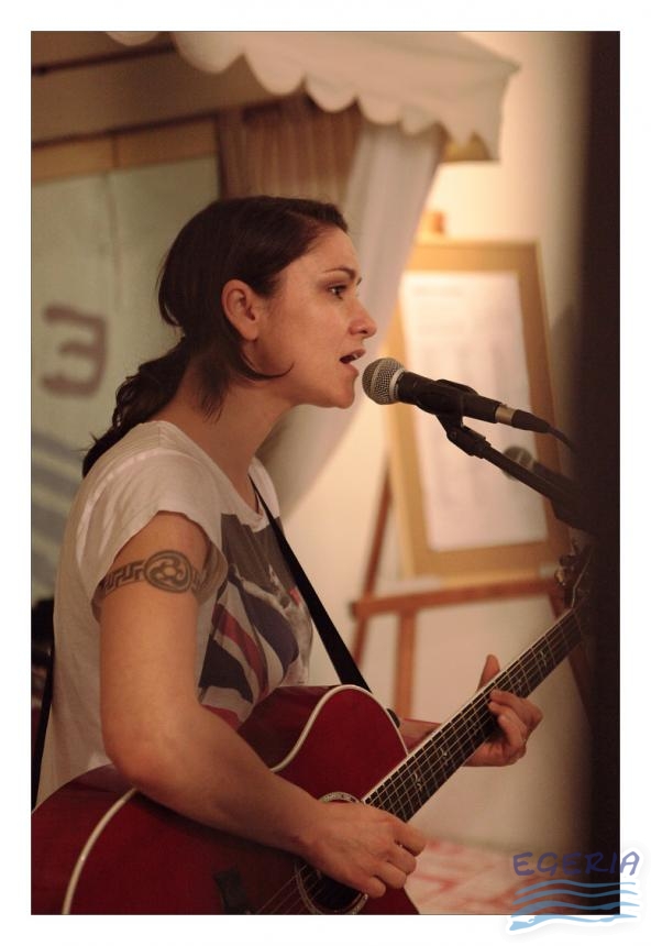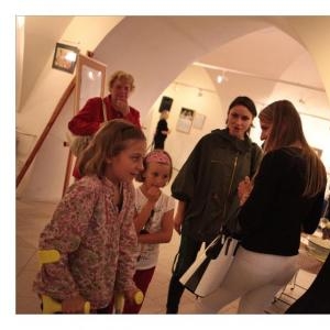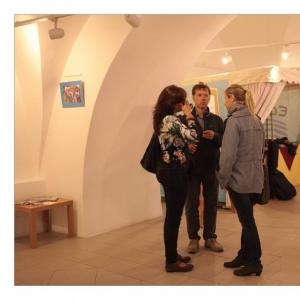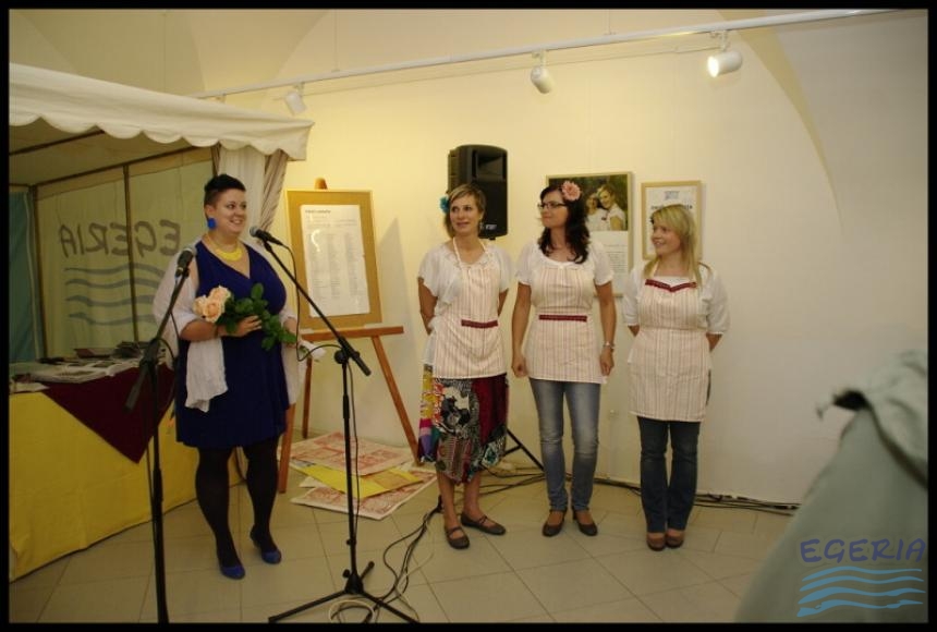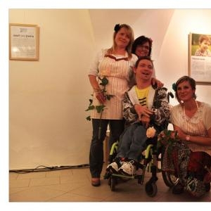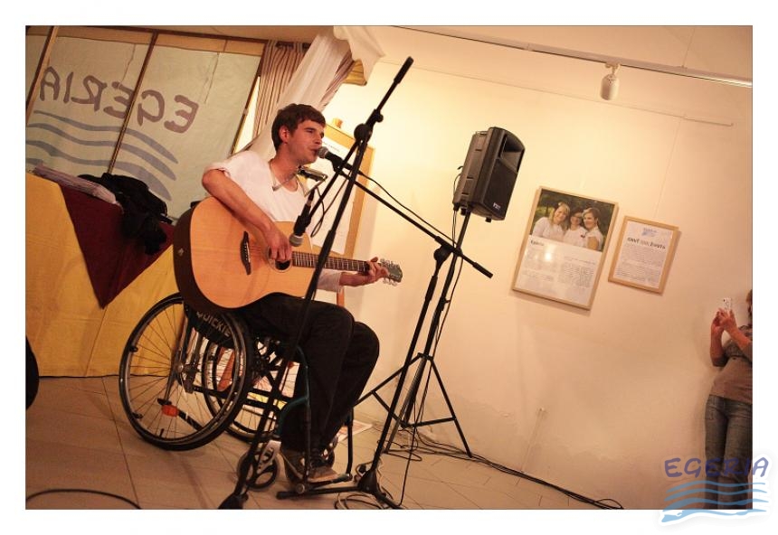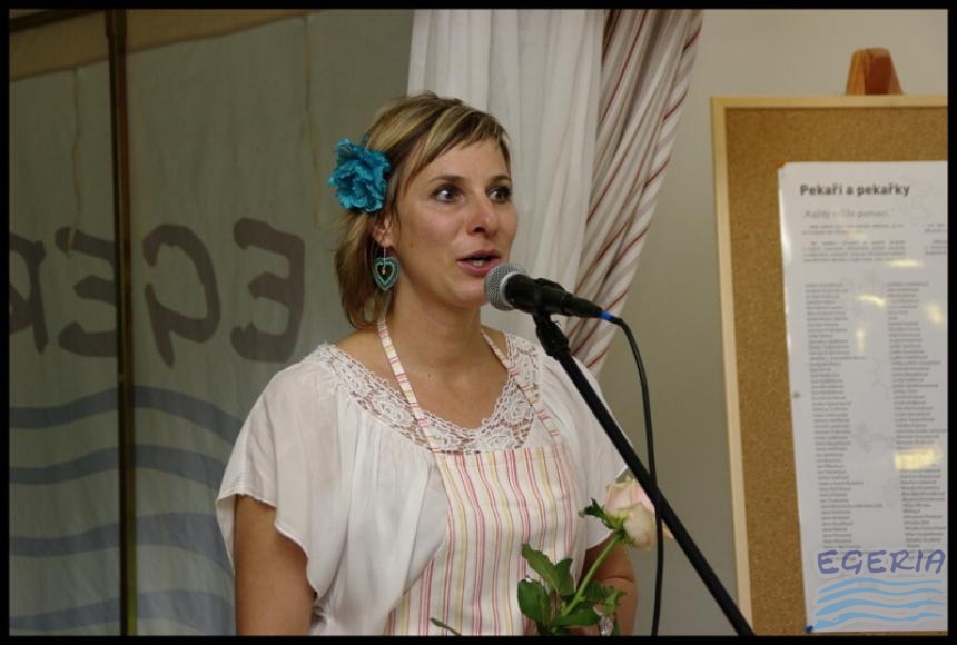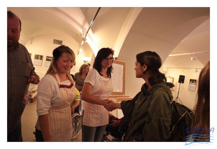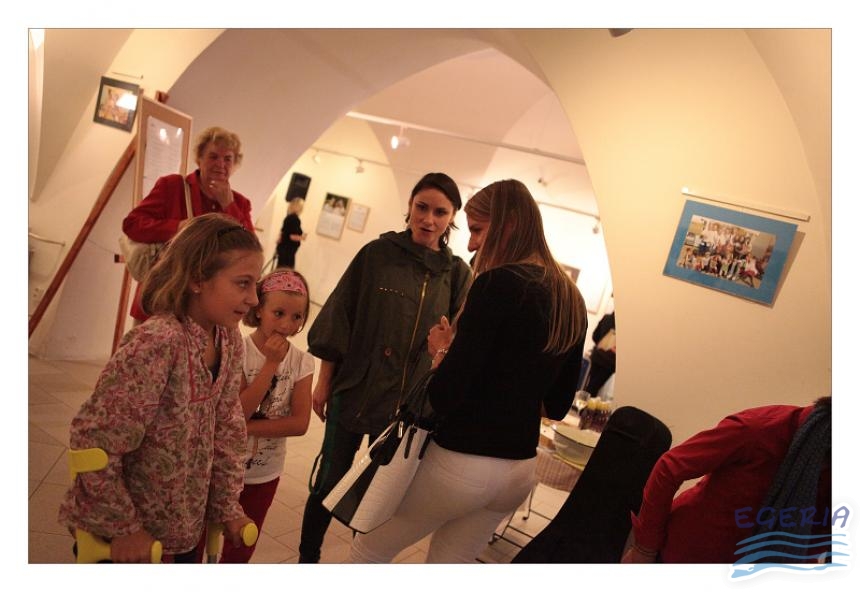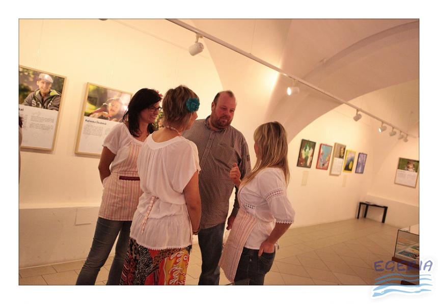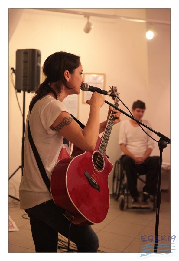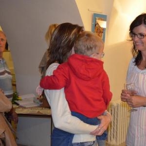 Lenka Dusilová jako patronka naší výstavy zahájila vernisáž našeho sdružení. Jak jinak, nežli písní.