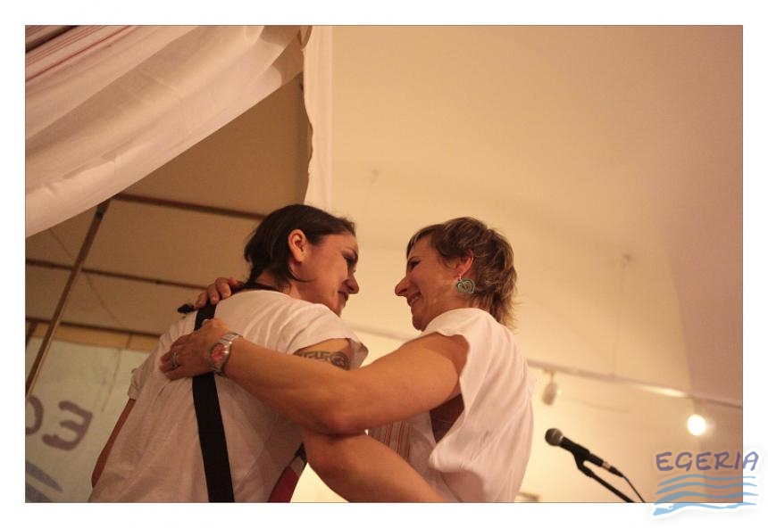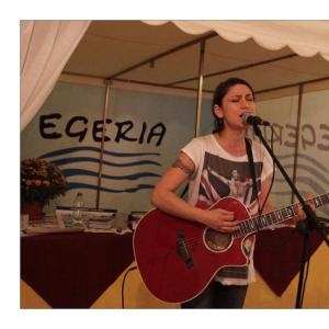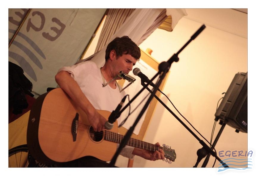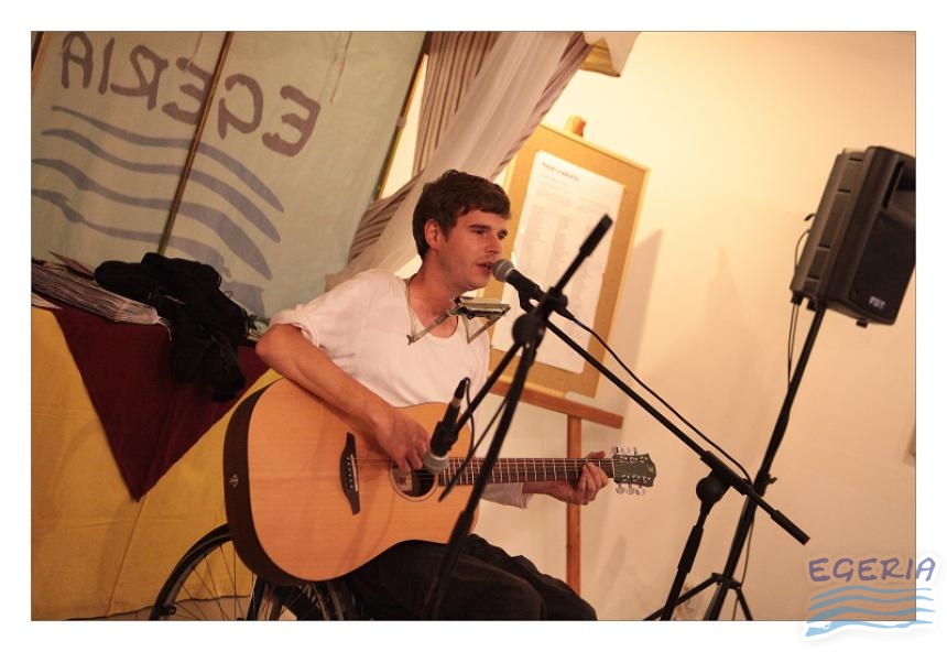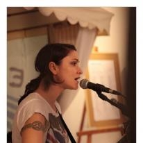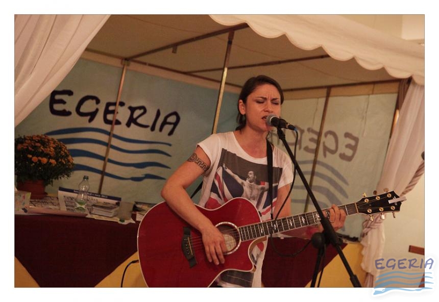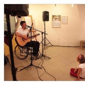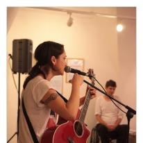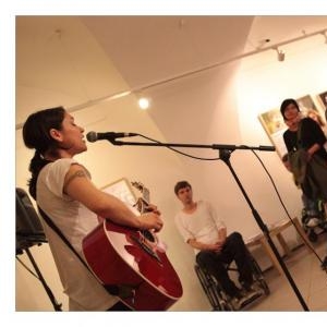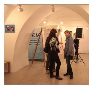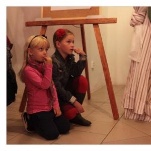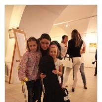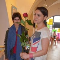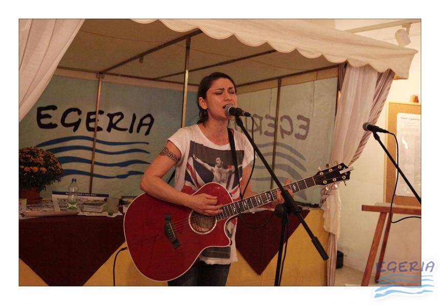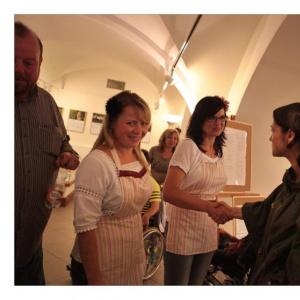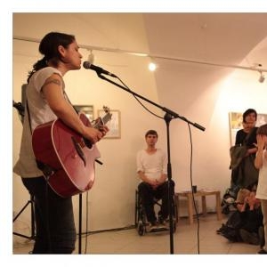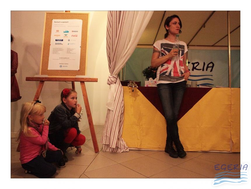 Lenka Dusilová jako patronka naší výstavy zahájila vernisáž našeho sdružení. Jak jinak, nežli písní.