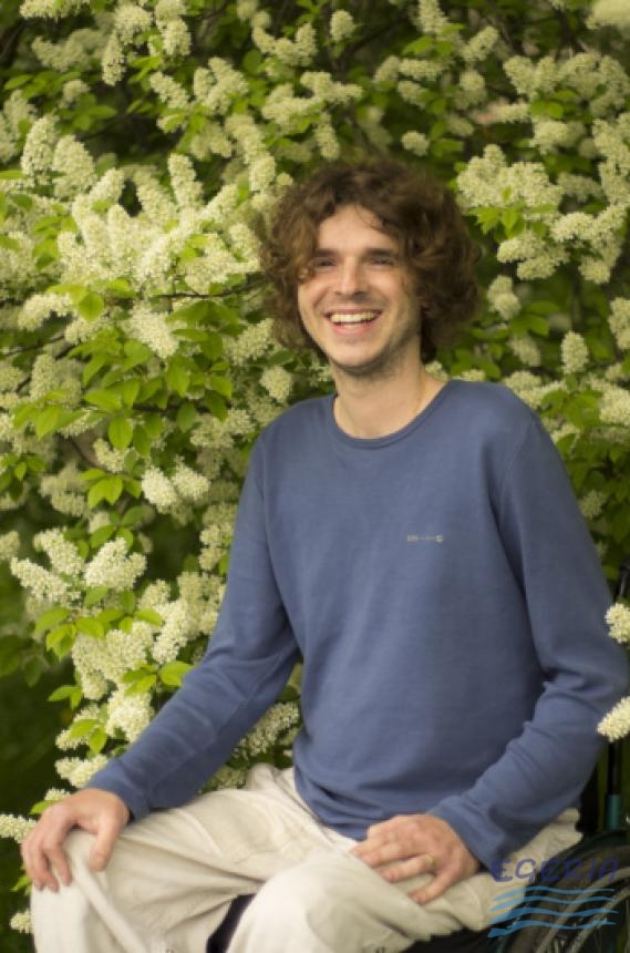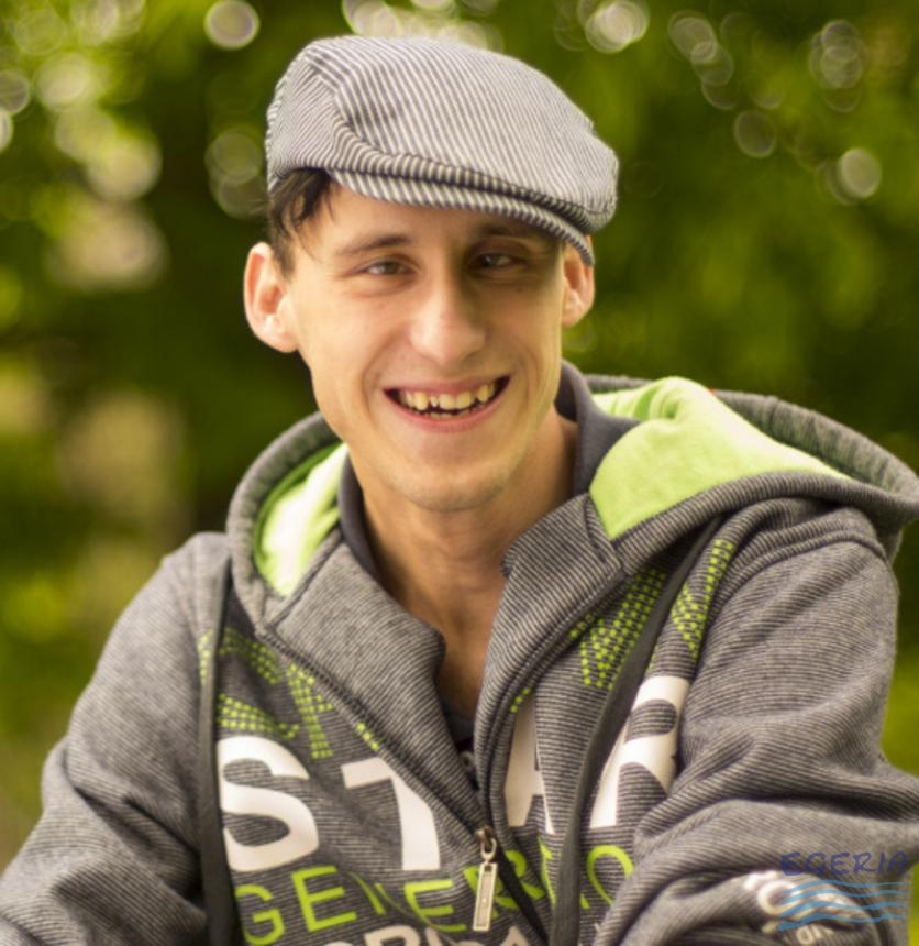 handicapem je svalová dystrofie, tedy postupné ochabování svalů,která mu poměrně ztěžuje pohyb v našem světě. Přesto pro něj